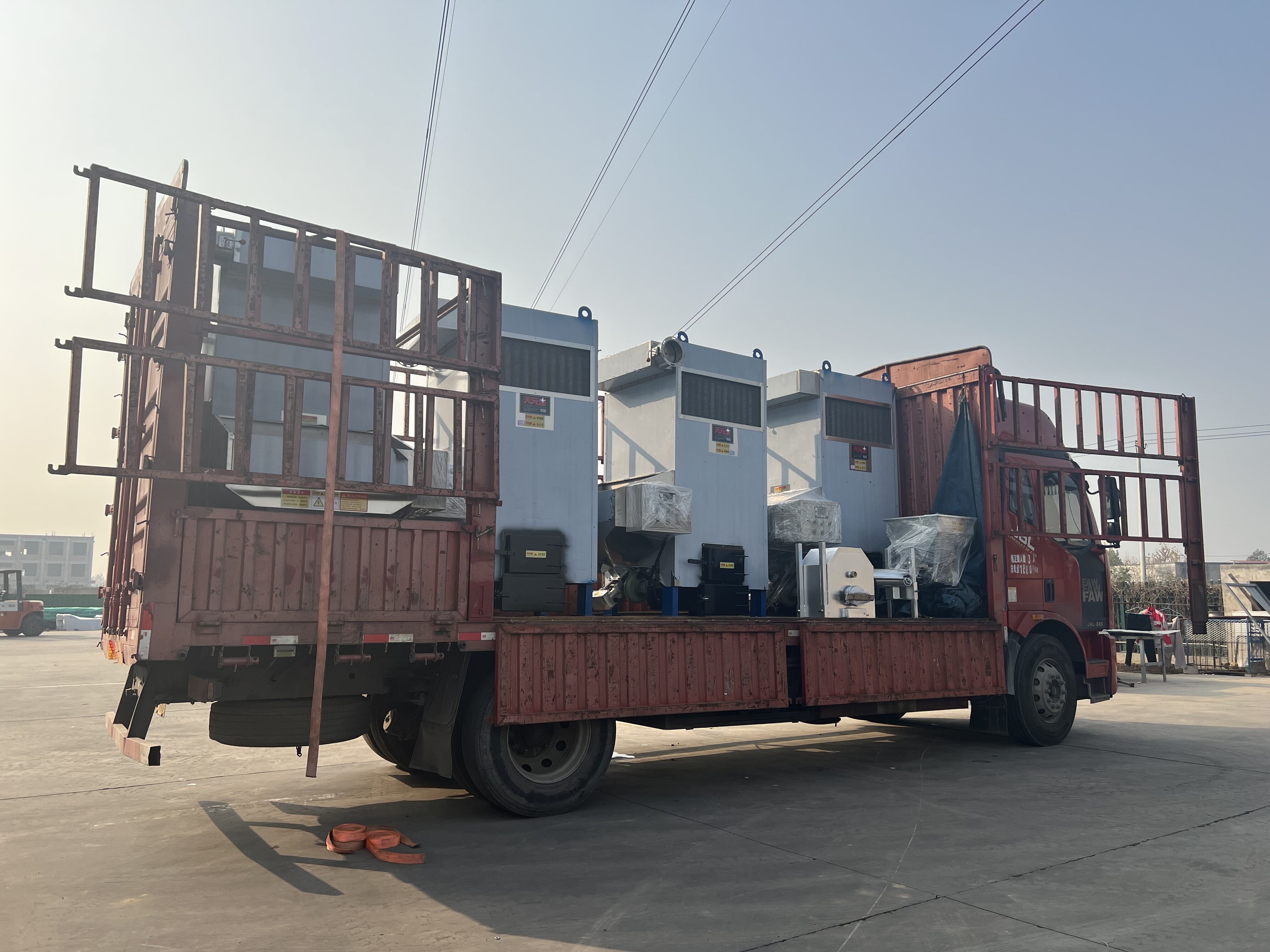 保定高碑店生物顆粒熱風爐左4臺,生物顆粒燃燒機發貨